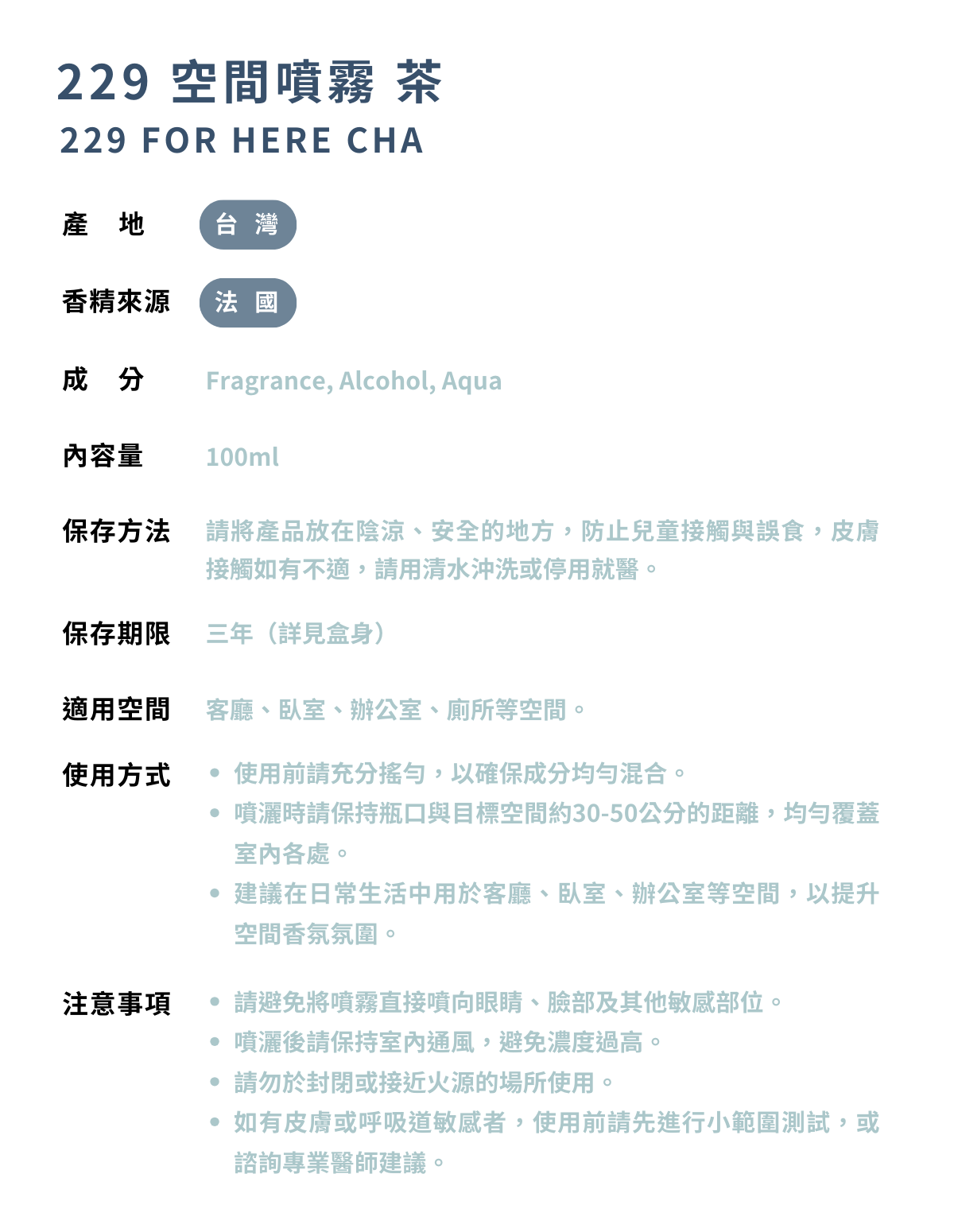229 空間噴霧 茶