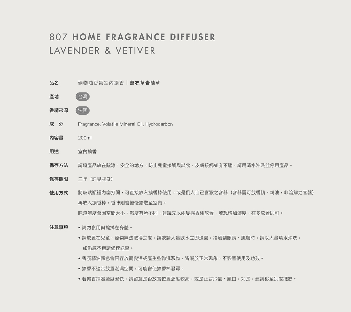 • 香味皆由法國調香師調製而成,香味出產地 Grasse,France。